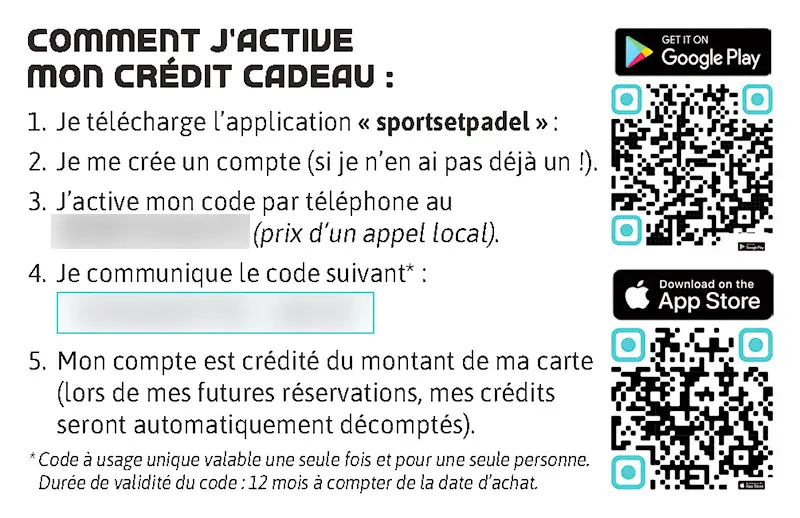 Permet d’ajouter 100 € de crédit à une cagnotte grâce à un code unique.